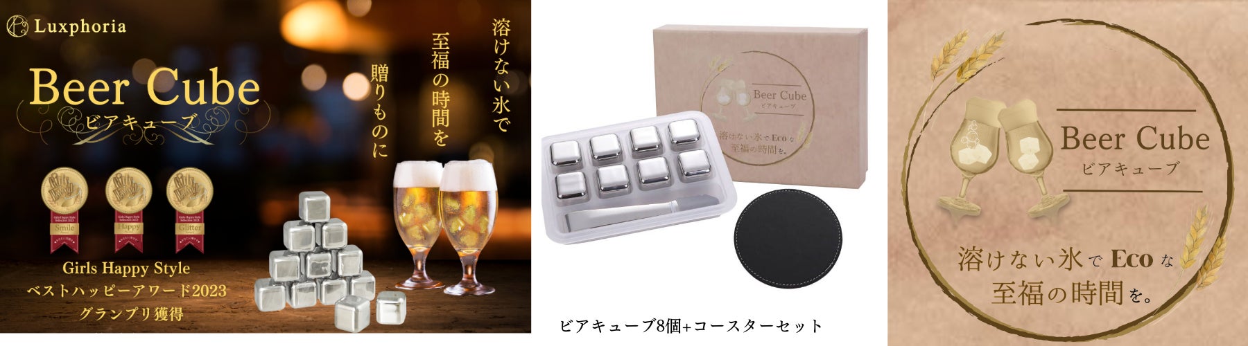 2023年3月14日にリリースした「ビアキューブ」はビールをはじめとしたお飲み物を薄めずに飲み終わりまで冷たさをキープできるステンレス製の氷です。